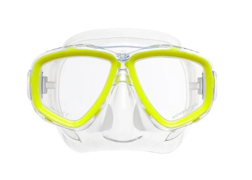 Diese einfache, aber zuverlässige Zweiglasmaske bietet ein gutes Sichtfeld zum Genuss der Unterwasserwelt, ein geringes Volumen, sodass man sie leicht ausblasen kann, und eine sowohl bequeme als auch gut abdichtende Flüssigsilikonlippe. Was kann man von einer preiswerten Maske noch verlangen?